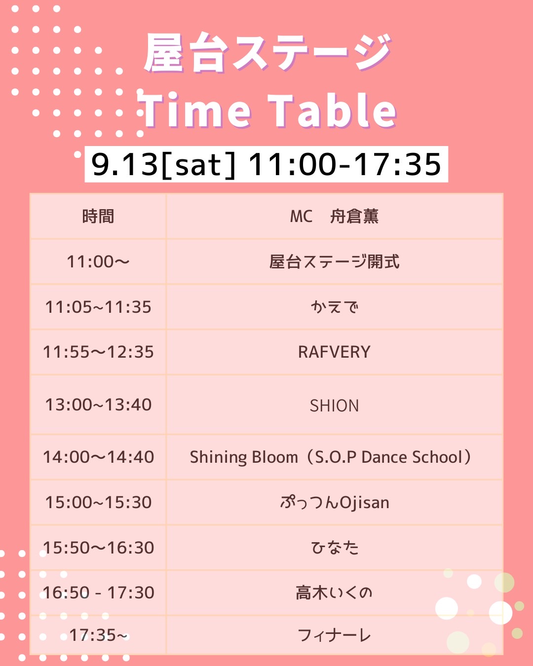 ※雨天時は全ステージ屋内の屋台ステージにて開催に変更