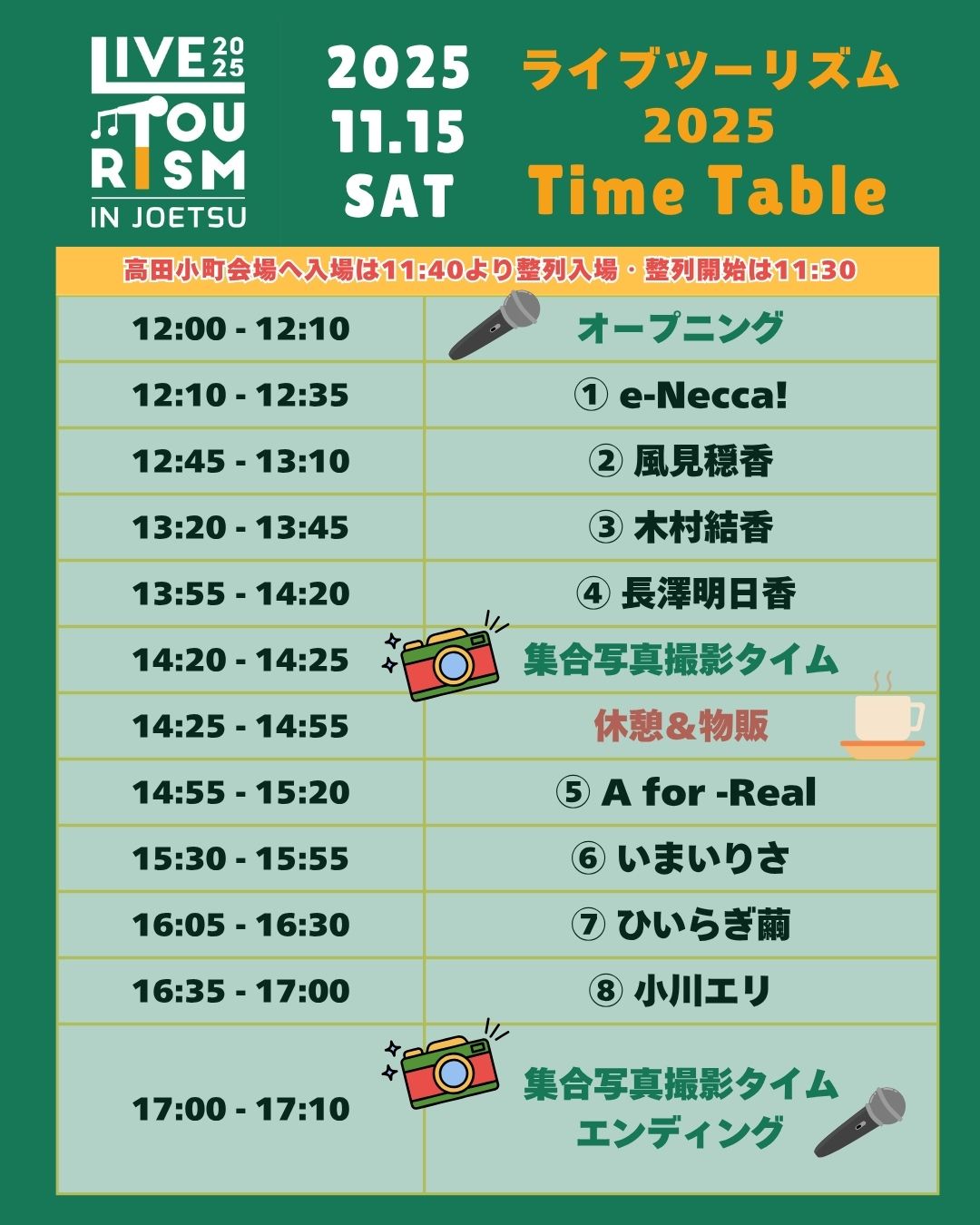 ライブ開催時間 12:00〜17:10